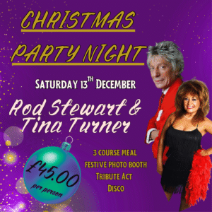 Get ready for a high-energy night of rock ‘n’ roll glamour and festive cheer with our Rod Stewart & Tina Turner Christmas Party Night – a dazzling celebration featuring two powerhouse tribute acts that will have you dancing in your seat and on your feet!
