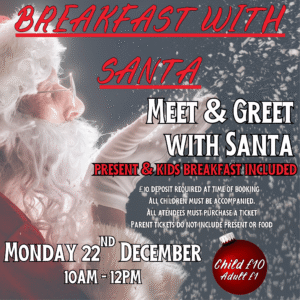 Make this Christmas truly magical with our Breakfast with Santa experience – a festive morning filled with joy, laughter, and holiday cheer for the whole family!